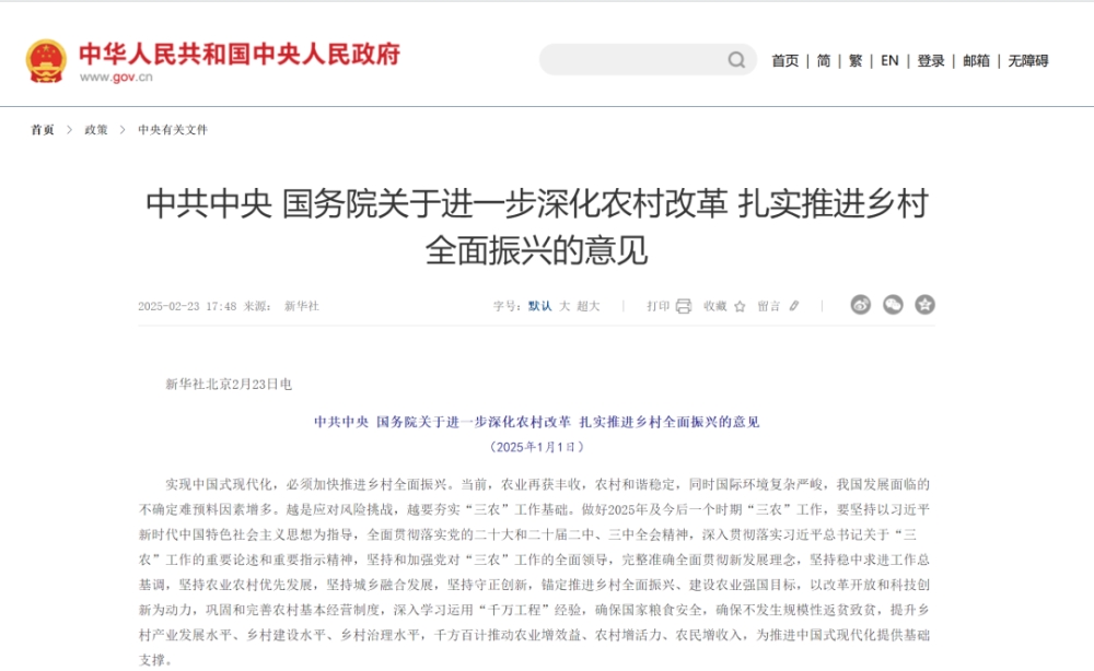 近日,《中共中央国务院关于进一步深化农村改革 扎实推进乡村全面振兴的意见》正式发布。全文共六大工作举措,促进农业增效益、农村增活力、农民增收入,扎实推进农业农村高质量发展。接下来,让我们一起划重点,从“两个持续”和“四个着力”,深入解读这份关乎亿万农民福祉的重要文件。