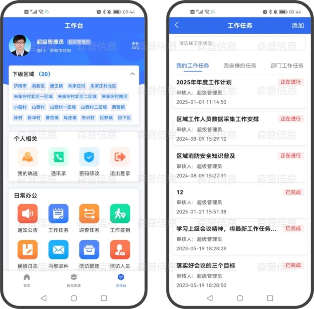 数字村务平台聚焦提升基层组织效能,打造好用的移动工作终端,包括村两委管理、巡查走访、民情日志、任务督办、请假考勤、工作审批、通知公告、三务公开、邮件、通讯录等功能,实现随走随报、随查随记、及时处理,保证各工作节点的留痕汇报。