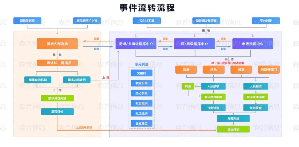 513事件调度平台为数字乡村构建高效的问题响应闭环。在问题源头上支持多渠道上报,流转给多部门联动协同处置,建立事件办理评价机制,并通过事件配置中心和消息提醒中心进行流程化管理,最后以综合考评检验成效。让乡村事件处理“响应更迅速、处置更高效、流程更透明、责任更明确”,真正做到“小事不出村、大事不出镇、矛盾不上交”。